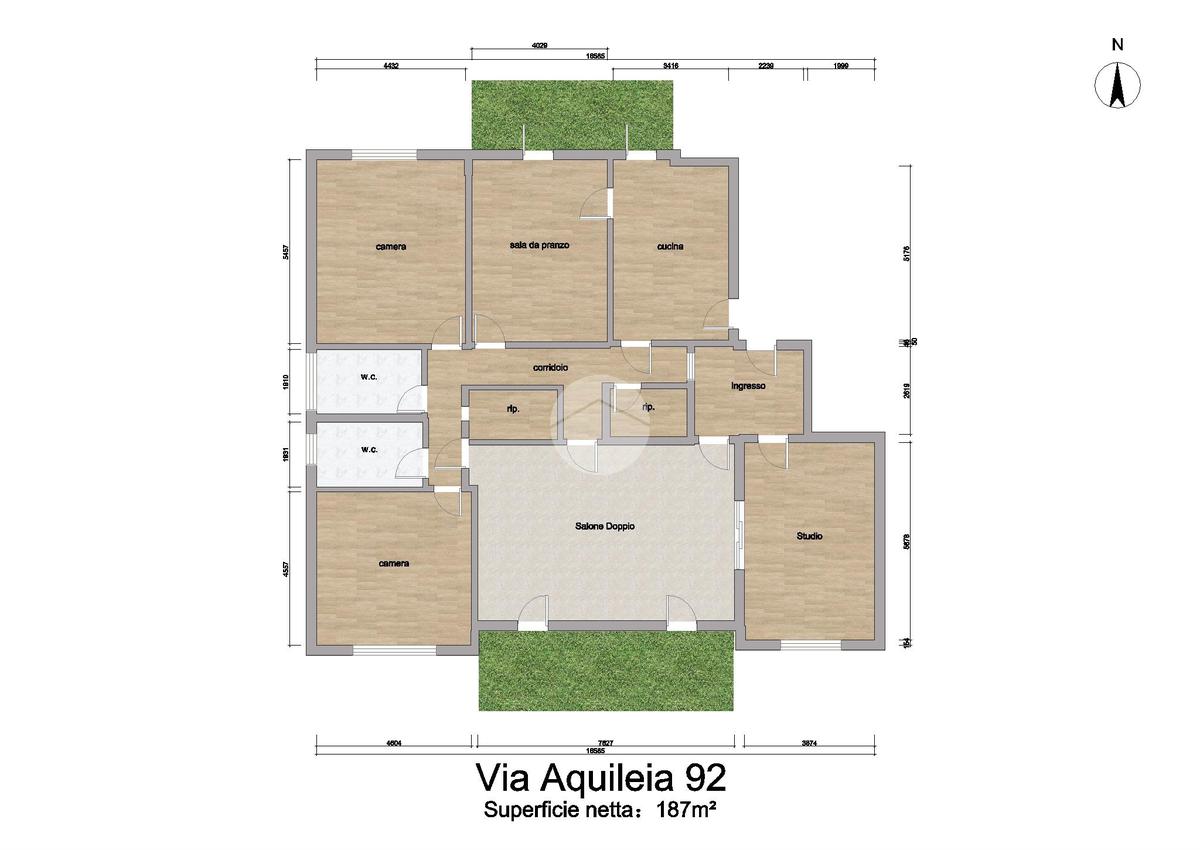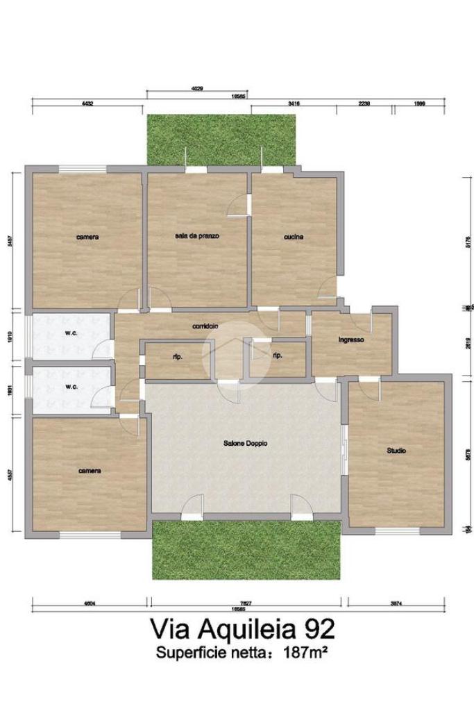 La zona notte, ben separata, ospita due camere da letto,doppi servizi e due comodi ripostigli, garantendo comfort e praticità per tutta la famiglia.